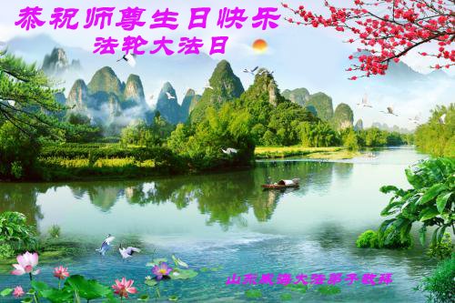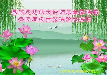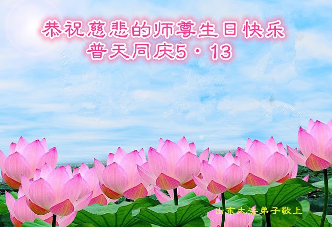 山东大法弟子恭祝慈悲伟大的师尊六十八周年华诞暨世界法轮大法日!