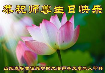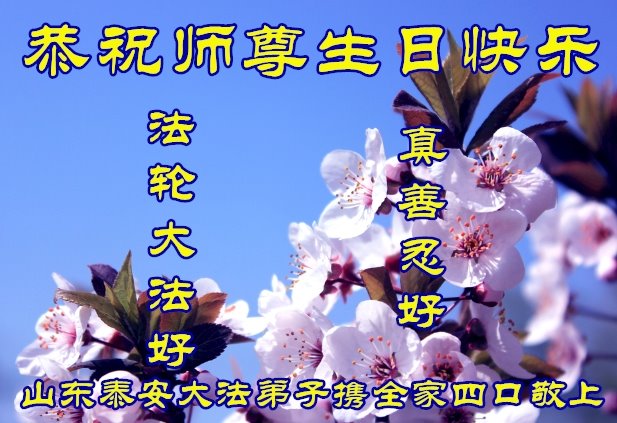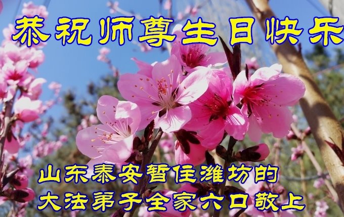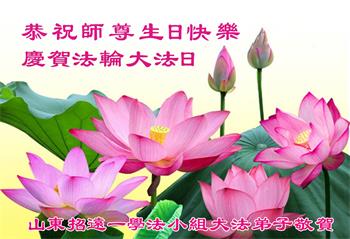 山东烟台招远一大法弟子恭祝师父生日快乐!恭祝世界法轮大法日!