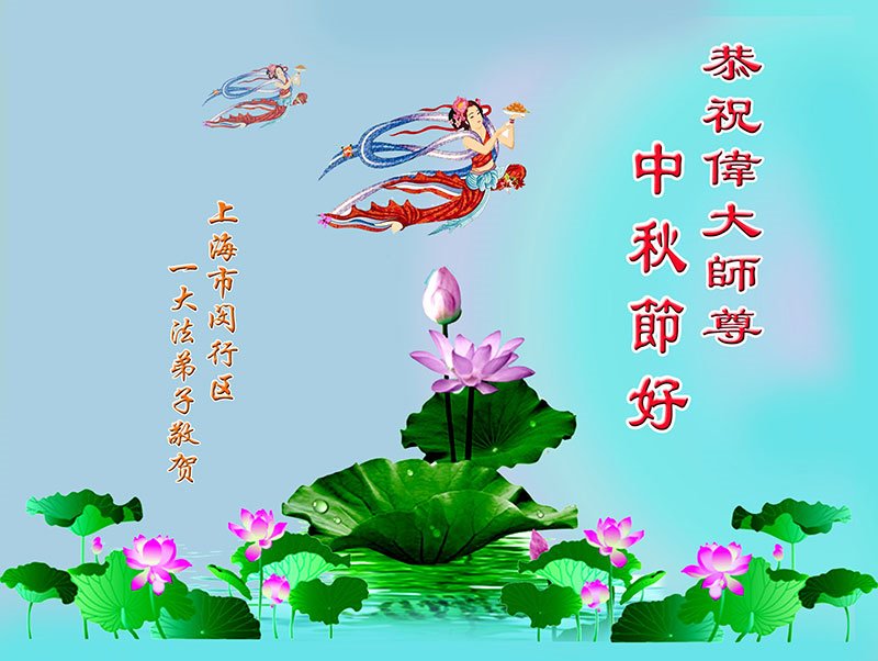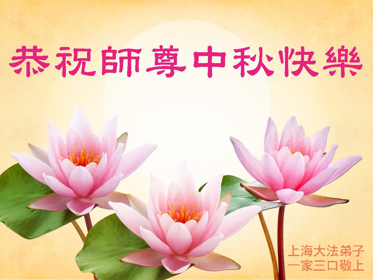 慈悲伟大的师父您好!师父您辛苦了! 我们要在最后的时间里更要修好自己,做好三件事,信师信法,听师父的话,向内找,在法中归正自己,做合格的大法弟子。弟子用尽语言也无法表达感恩师尊的无量慈悲与救度,弟子想念师尊!盼望师尊早日回到中国大陆。感恩师尊!感恩大法! 上海浦东、南汇地区姐妹俩敬贺! 上海一家大法弟子恭祝慈悲伟大的师尊中秋节快乐!
