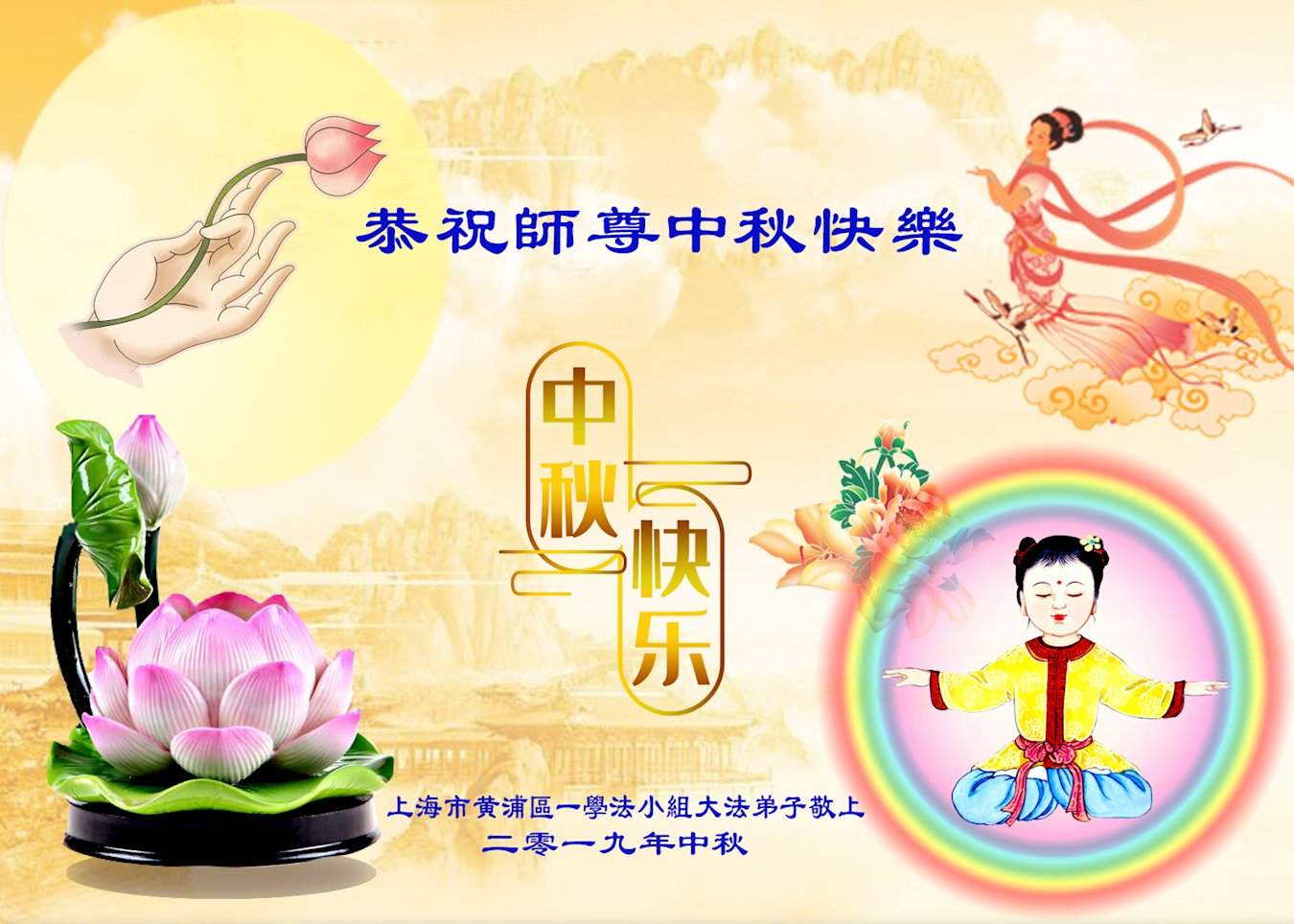 【明慧网二零一九年九月十日】 上海市浦东新区大法弟子恭祝师尊中秋快乐!