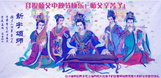 尊敬的师父好! 又到了中秋节,弟子们在这段时间的修炼中,在您慈悲的安排下,又发现了不少以前隐藏的人心执着。更加明白了修炼应该向内找,修自己。只有自己修好了,才能更好的救度众生,完成史前誓约,圆满随师还。感恩师尊的慈悲救度!恭祝师尊中秋节快乐! 上海大法弟子一家三口敬上! 上海市黄浦区一学法小组大法弟子恭祝师尊中秋快乐!