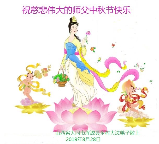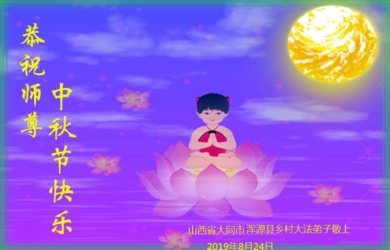 师父您好!谢谢师尊慈悲救度! 山西省大同市浑源县乡村大法弟子敬上 2019年8月29日 山西省大同市浑源县乡村大法弟子恭祝师尊中秋节快乐!