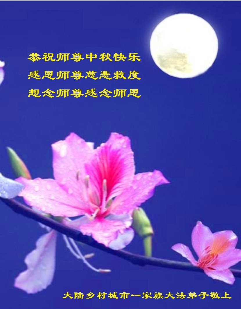 又逢中秋月儿圆 举目望月夜难眠 正法進程近尾声 师徒团圆日不远 唯有实修快精進 少给师尊添麻烦 中秋团圆佳节日 弟子跪拜遥祝愿 黑龙江省佳木斯郊区乡村母女大法弟子恭祝伟大慈悲的师尊中秋节快乐!