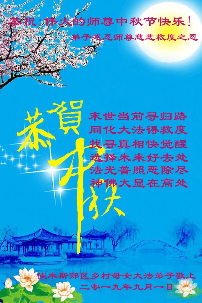 山西省平定县的乡村大法弟子们恭祝慈悲伟大的师尊中秋节快乐! 黑龙江省齐齐哈尔市富裕县二道湾镇农村大法弟子恭祝师尊中秋快乐!