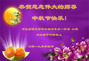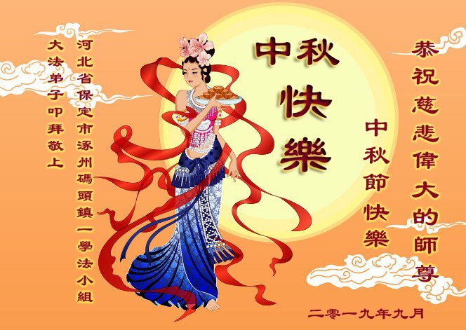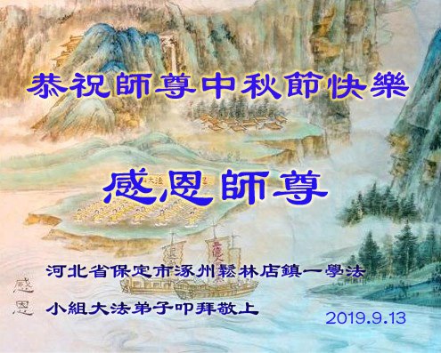 河北省保定市涿州双塔区一学法小组大法弟子叩拜敬上 二零一九年中秋节 |