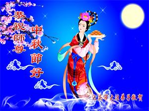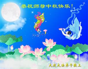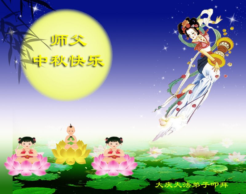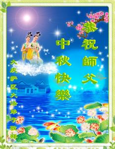 花好月圆中秋夜 思念恩师更心切 救度之恩无法报 敬上表心愿 黑龙江省大庆市创业城一大法弟子恭祝师父中秋节好!