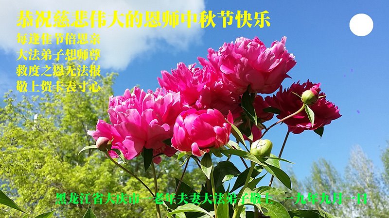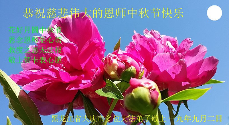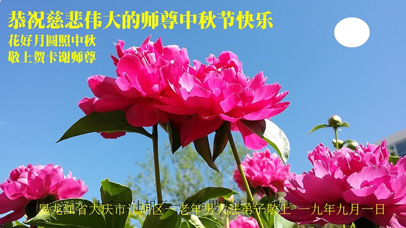 【明慧网二零一九年九月十日】 黑龙江省大庆后龙岗大法弟子恭祝师尊中秋快乐!
