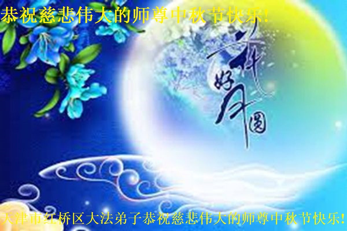 天津市红桥区大法弟子恭祝慈悲伟大的师尊中秋节快乐!