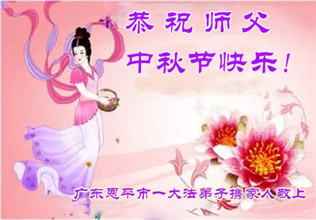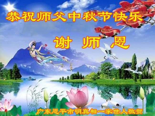 恭祝师父中秋节快乐! 广东恩平市明真相一家世人恭贺 广东省江门市恩平市一大法弟子恭祝师父中秋节快乐!