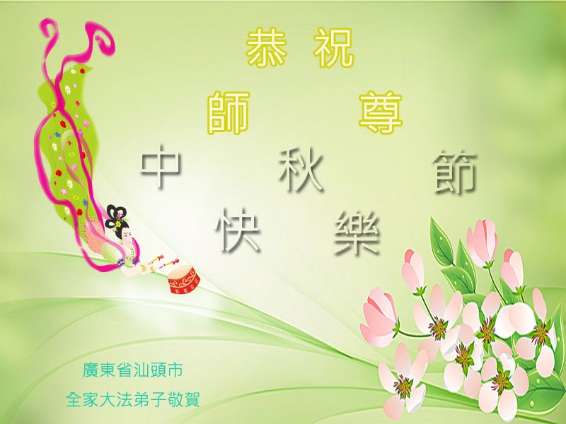 恭祝师父中秋节快乐! 广东恩平市一大法弟子携家人敬上 广东省汕头市全家大法弟子恭祝慈悲伟大的师尊中秋节快乐!