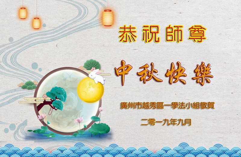 广州大法弟子恭贺 二零一九年八月 广东省广州大法弟子及家人恭祝慈悲伟大的师尊2019年中秋节快乐!
