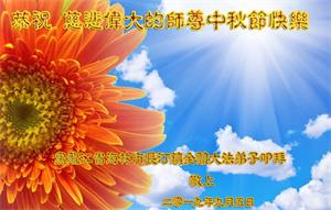 全体大法弟子敬拜! 广东省广州全体法轮大法弟子恭祝慈悲伟大的师尊中秋快乐!