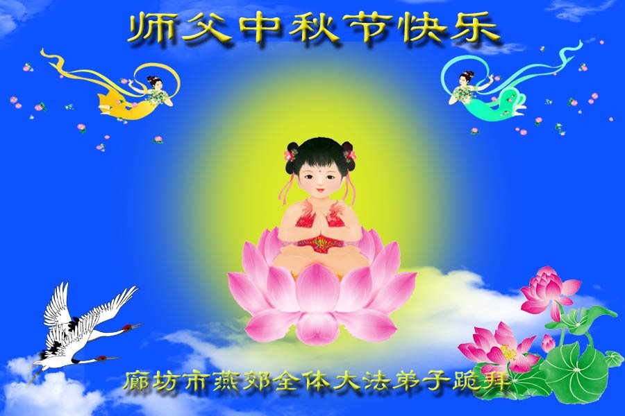【明慧网二零一九年九月十日】 河北省廊坊燕郊全体大法弟子跪拜恭祝师父中秋节快乐!