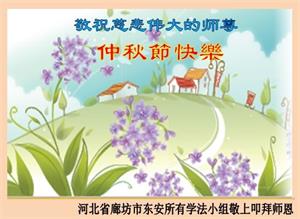 恭祝师尊中秋节快乐! 河北省廊坊市广阳区四人学法小组大法弟子敬上 河北省廊坊市三人学法小组大法弟子恭祝师尊中秋节快乐!