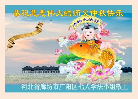 又是一年月儿圆 徒感恩师化洪愿 精進实修不怠慢 多救众生蹬法船 法正人间时不远 芸芸众生翘首盼 盼迎师尊回家园 那时中秋月更圆 河北省廊坊市一学法小组大法弟子恭祝师尊中秋节快乐!