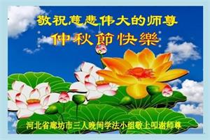 河北省廊坊燕郊一学法小组大法弟子跪拜恭祝师父中秋节快乐!
