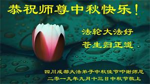 【明慧网二零一九年九月十日】 四川成都大法弟子恭祝师尊中秋快乐!