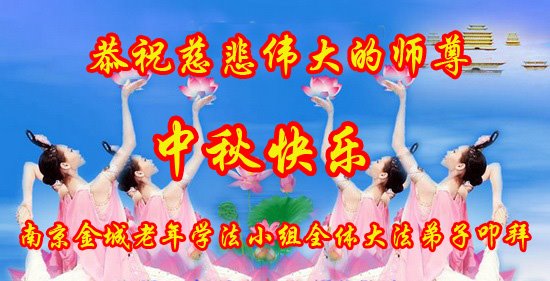 恭祝慈悲伟大的师尊中秋快乐! 师尊为了我们日夜操劳,为了我们的安全时时刻刻保护着我们,我们想念师尊,盼望师尊早日回来。我们一定努力做好三件事,做师尊合格的弟子,跟师尊回家。 江苏省南京金城老年学法小组全体大法弟子恭祝师尊中秋快乐!
