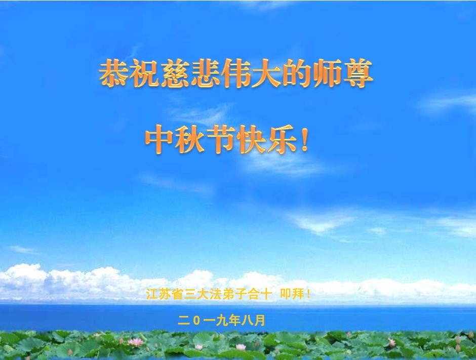 【明慧网二零一九年九月十日】 江苏省南京市江宁区全体大法弟子恭祝慈悲伟大的师尊中秋快乐!
