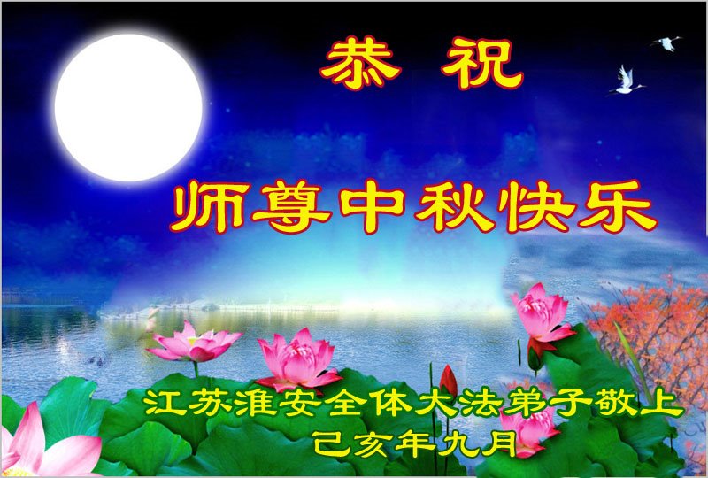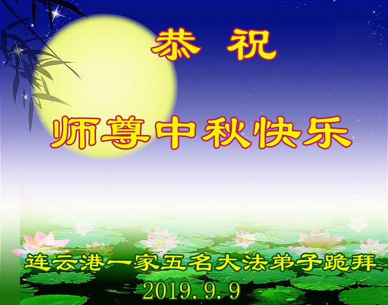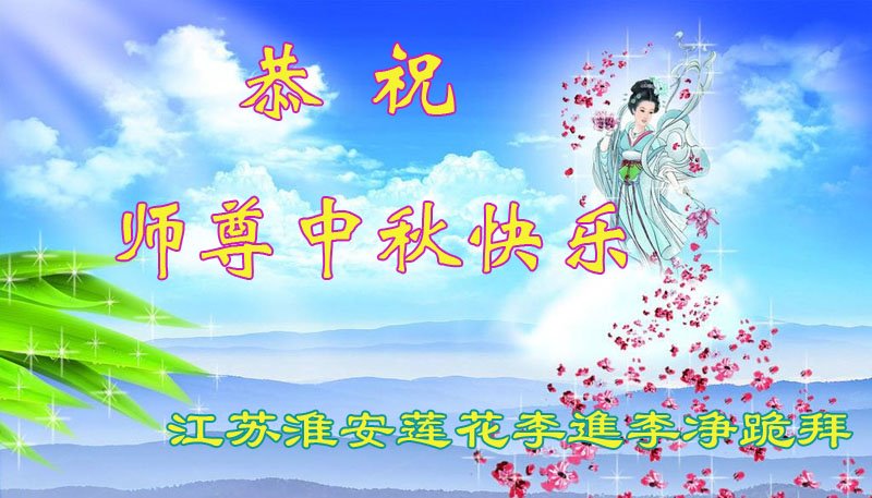 恭祝师尊中秋快乐!感谢师尊救度之恩!连云港一家五名大法弟子跪拜! 江苏淮安全体大法弟子恭祝师尊中秋快乐!