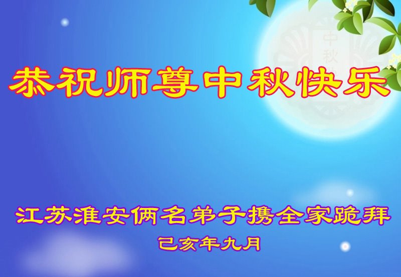 恭祝中秋快乐!感谢师尊救度之恩!淮安全体大法弟子敬上 江苏淮安一家两名大法弟子携全家恭祝师尊中秋快乐!感谢师尊救度之恩!