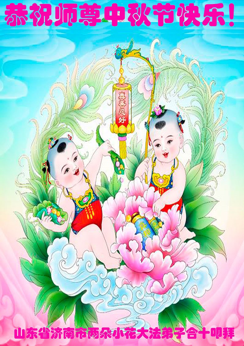 山东济南一大法弟子及全家恭祝师尊中秋节快乐!