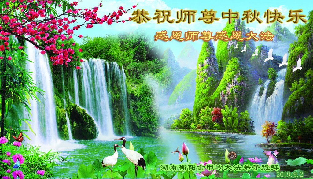恭祝师尊中秋节快乐! 湖南省衡阳市全体大法弟子敬贺 2019年9月1日 湖南怀化地区通道县全体大法弟子恭祝慈悲伟大的师尊中秋节快乐!