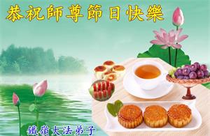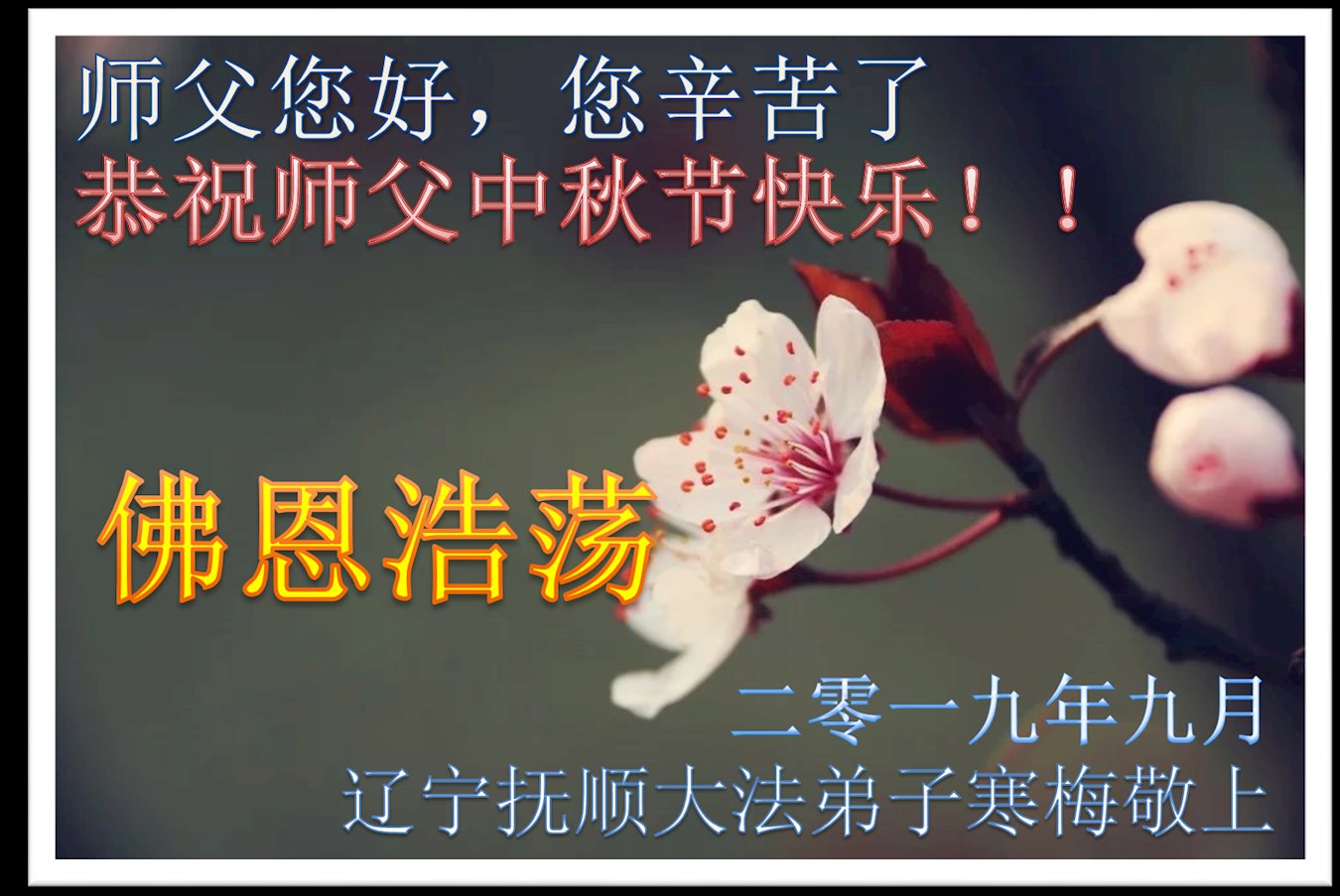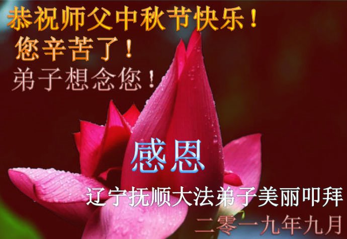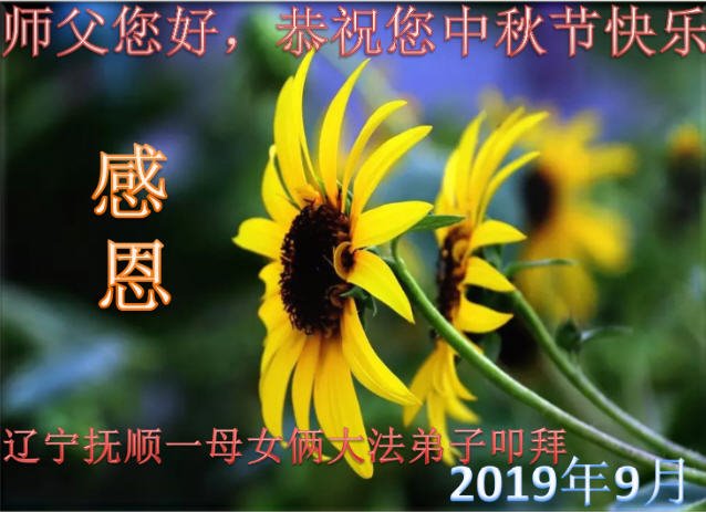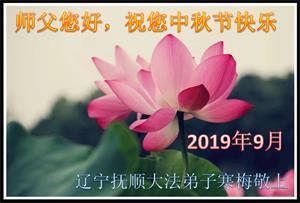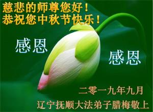 【明慧网二零一九年九月十日】 辽宁抚顺一女大法弟子恭祝师父中秋节快乐!
