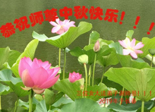 【明慧网二零一九年九月十日】 吉林省长春三位女大法弟子恭祝师尊中秋快乐!