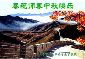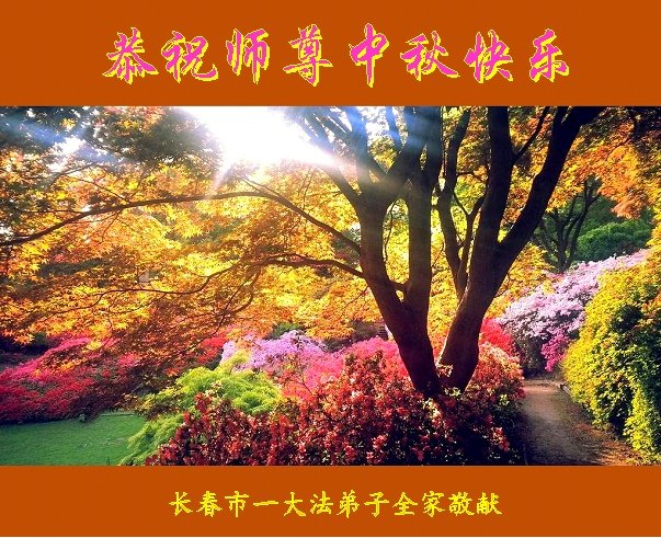 师父您辛苦了!唯有精進报师恩! 吉林省长春一学法组全体大法弟子恭祝师尊中秋快乐!
