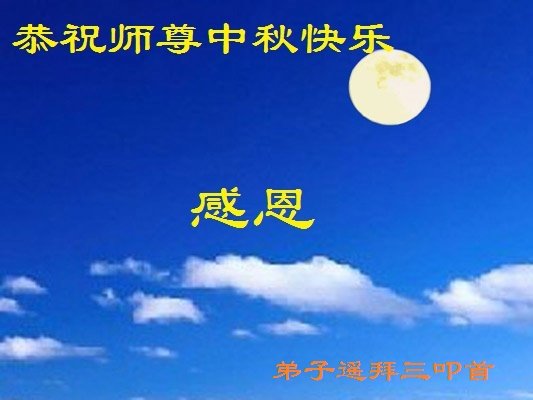 中秋念师恩 中秋佳节念师恩 万里云遥传佳音 助师正法随师愿 多救众生回天门 精修自己不怠慢 随师回家法船蹬 |