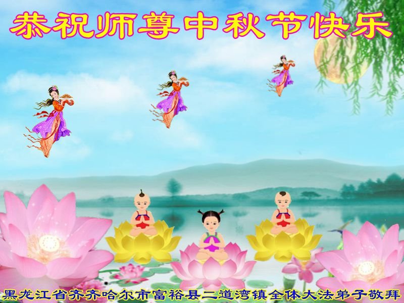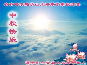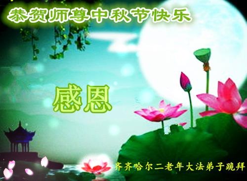 黑龙江省齐齐哈尔二老年大法弟子恭祝师尊中秋节快乐!