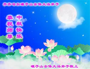【明慧网二零一九年九月十日】 黑龙江省齐齐哈尔碾子山大法弟子恭祝师尊中秋快乐!