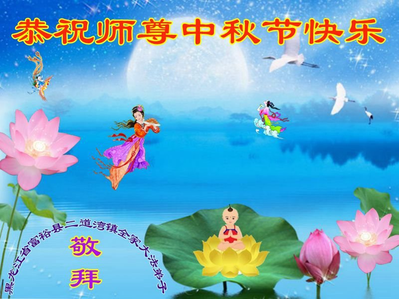 真心感恩师尊一路的保护,弟子用任何语言都表达不了师尊的洪大慈悲,千言万语汇成一句话:衷心恭祝师尊中秋节快乐! 黑龙江省齐齐哈尔碾子山大法弟子恭祝师尊中秋快乐!