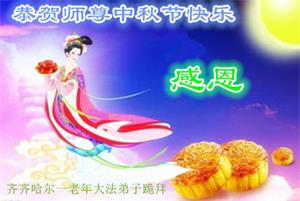 黑龙江省齐齐哈尔一老年大法弟子恭祝师尊中秋节快乐!