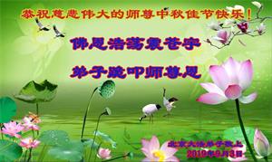 己亥年中秋节即将到来,大法弟子向慈悲伟大的师尊问好,并祝师尊中秋节快乐!大法弟子谨遵师尊的教诲,精進实修,并向师尊合十叩拜!