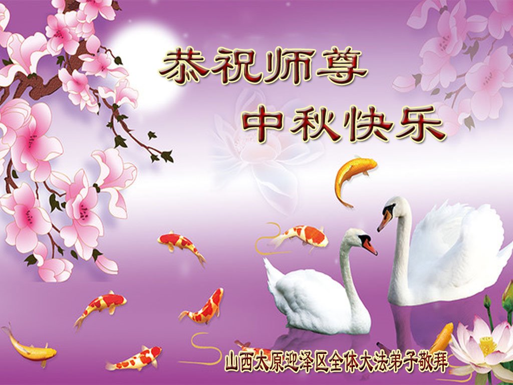 恭祝师尊中秋快乐! 正法已走过了二十个年头,师尊带领我们走出了苍宇的劫难。 值此中秋佳节到来之际,山西太原全体大法弟子恭祝师尊中秋快乐! 面对天象的变化和正法進程的安排,我们要放下所有的人心,珍惜最后这值千金、值万金的时刻,更好的救度众生,无愧于师尊的慈悲苦度。 山西太原全体大法弟子叩拜 山西省太原市万柏林区全体大法弟子恭祝师尊中秋快乐!