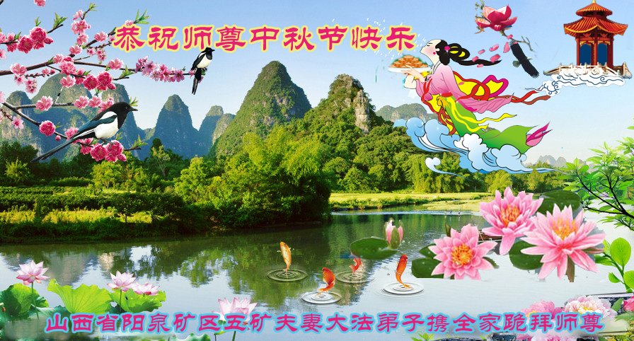 山西省阳泉矿区五矿夫妻大法弟子携全家恭祝慈悲伟大的师尊中秋节快乐! 山西省阳泉五矿夫妻大法弟子携全家恭祝慈悲伟大的师尊中秋节快乐!