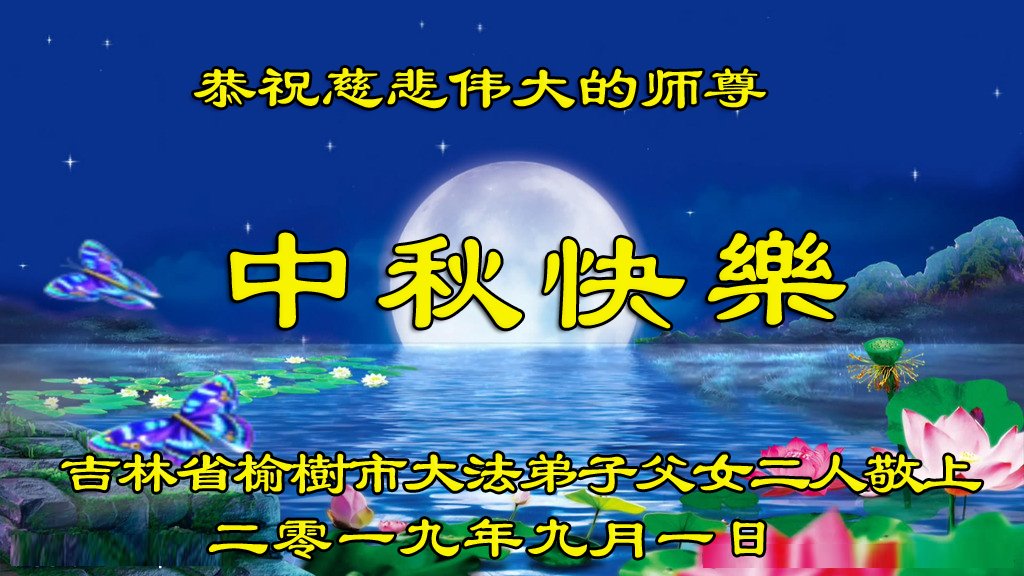 恭祝师尊中秋节快乐!感恩师尊慈悲苦度!弟子们一定听师父话,形成整体,做好三件事,多救人。叩拜师尊! 吉林省长春市榆树市大法弟子父女二人恭祝师尊中秋快乐!