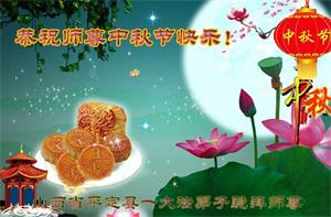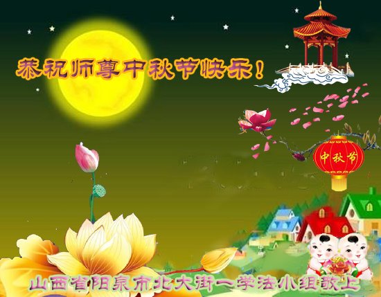山西省平定县一大法弟子恭祝慈悲伟大的师尊中秋节快乐! 山西省阳泉市北大街一学法小组大法弟子恭祝慈悲伟大的师尊中秋节快乐!