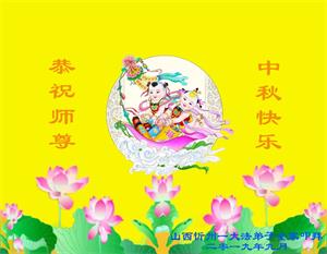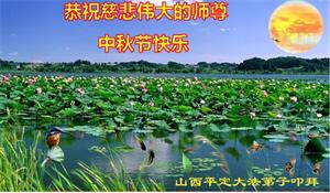 山西省平定县西关一大法弟子恭祝慈悲伟大的师尊中秋节快乐! 山西省阳泉市城区一学法小组大法弟子们恭祝慈悲伟大的师尊中秋节快乐!