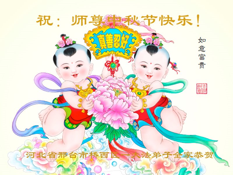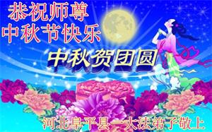 师尊您辛苦了,您为弟子承受了一切,给了弟子一个全新的生命,弟子无以回报,只有修好自己,多救众生,愿师尊少一份操劳,多一份欣慰,谢谢师尊! 弟子叩拜师尊。 河北阜平全体大法弟子恭祝师尊中秋节快乐!
