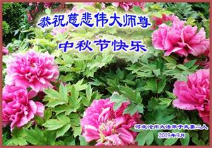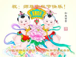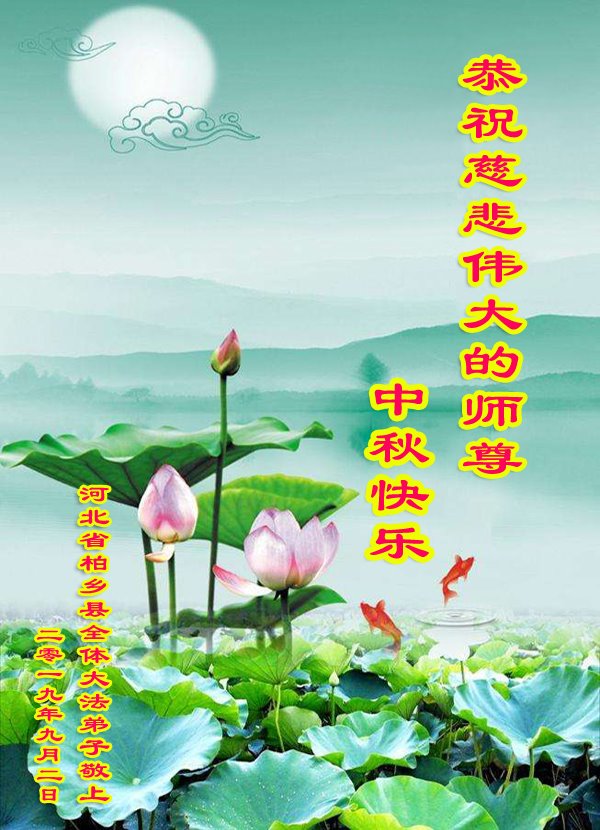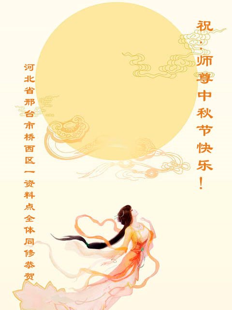 中秋佳节倍思亲!弟子跟随师父走过了二十多年的修炼路,如今,弟子们也越来越成熟起来。在今后的修炼路上,弟子们会更加精進,做好三件事,请师父放心!希望早日与师父团圆!河北省柏乡县全体大法弟子叩谢师恩! 河北省邯郸市峰峰矿区大法弟子恭祝师尊中秋节快乐!