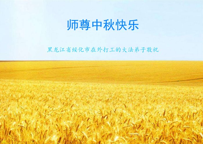 【明慧网二零一九年九月十日】 黑龙江省绥化市明水县在外打工的大法弟子恭祝师尊中秋快乐!