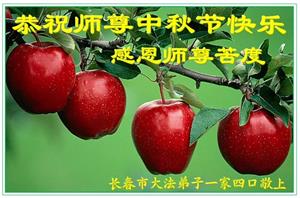 吉林省长春市大法弟子一家四口恭祝师尊中秋节快乐!