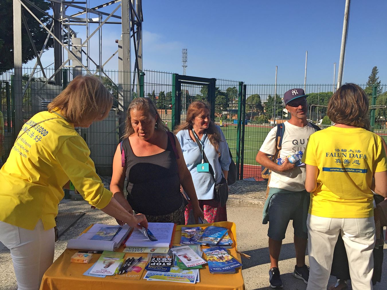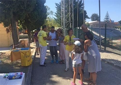 法轮大法的展位十分抢眼,学员们有的演示功法,有的向民众讲真相,还有的学员教小朋友制作真相小莲花。 来自里斯本的米盖尔先生说,他很赞同法轮功教人重德向善的理念,他能感受到炼功音乐十分祥和,带有强大的能量。 还有一位带小孩的女士接过传单匆匆离去,一会又回来在征签单上签字,她说非常震惊有活摘法轮功学员器官的事,她支持学员和平反迫害,希望学员越做越好。 |