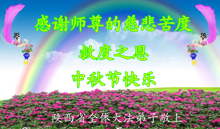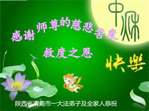 感谢师尊的慈悲救度之恩!恭祝师尊中秋节快乐! 陕西省全体大法弟子敬上! 陕西省富平全体大法弟子恭祝师尊中秋节快乐!