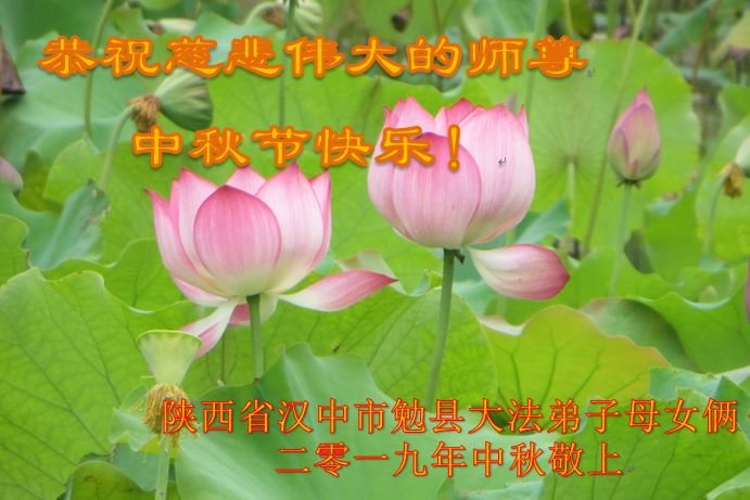 陕西省勉县大法弟子一家恭祝师尊中秋节快乐! 陕西汉中全体大法弟子恭祝师尊中秋节快乐!