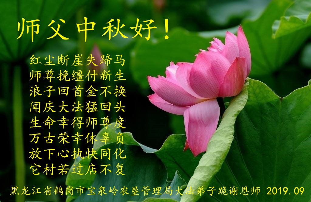 二零一九年九月九日 辽宁省餐饮行业大法弟子恭祝师父中秋节快乐!