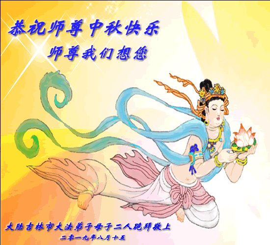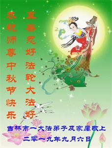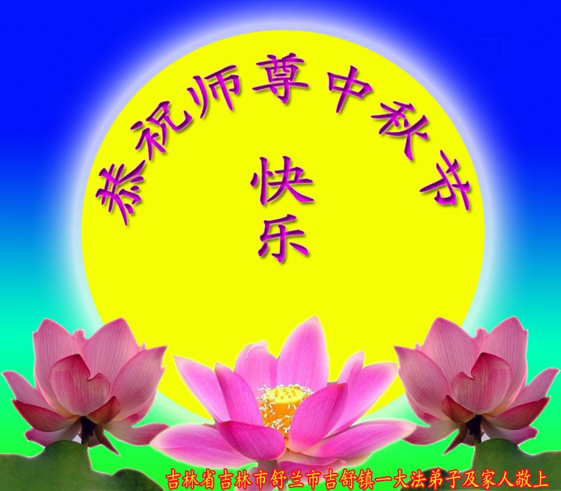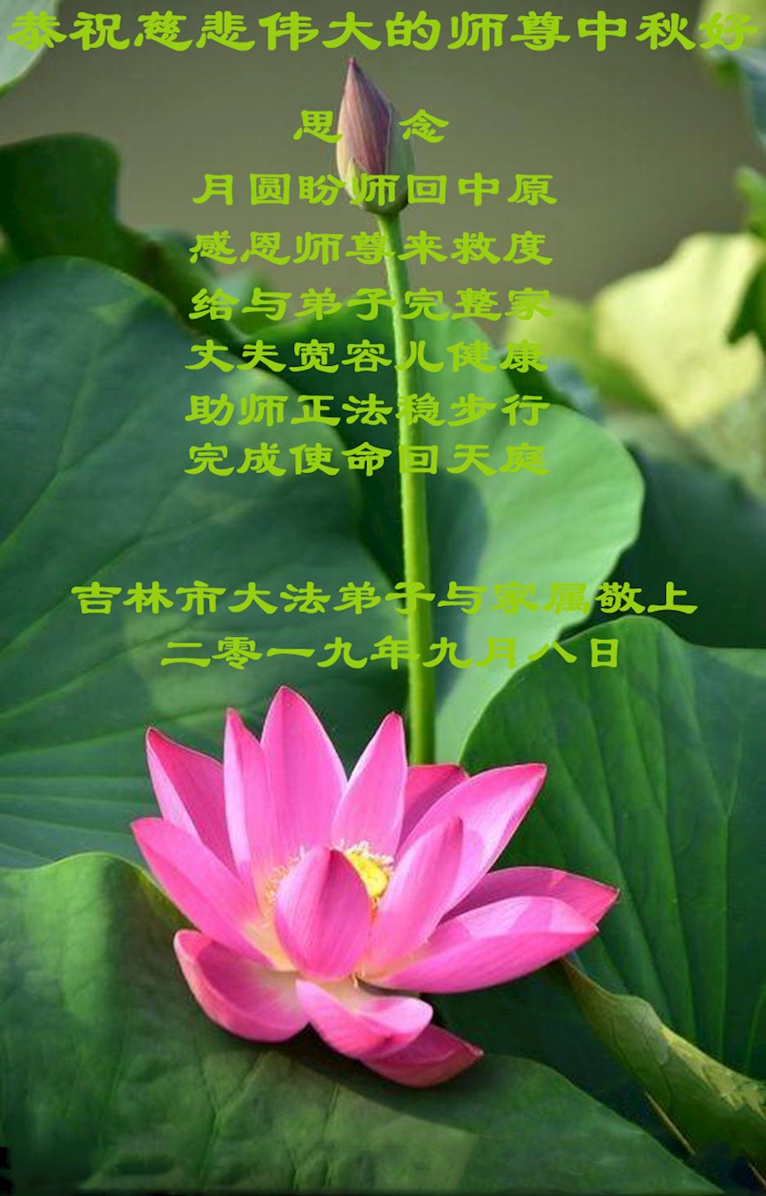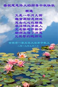 恭祝慈悲伟大的师尊中秋快乐! 吉林市母女俩大法弟子恭祝慈悲伟大的师尊中秋快乐! 吉林省吉林市大法弟子及家属恭祝慈悲伟大的师尊中秋快乐!